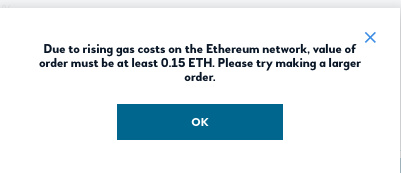 此外,由于 Gas 费一直在上涨,IDEX 规定了交易额必须 0.15 个 ETH 才能进行交易,中心化交易所并无此限制。