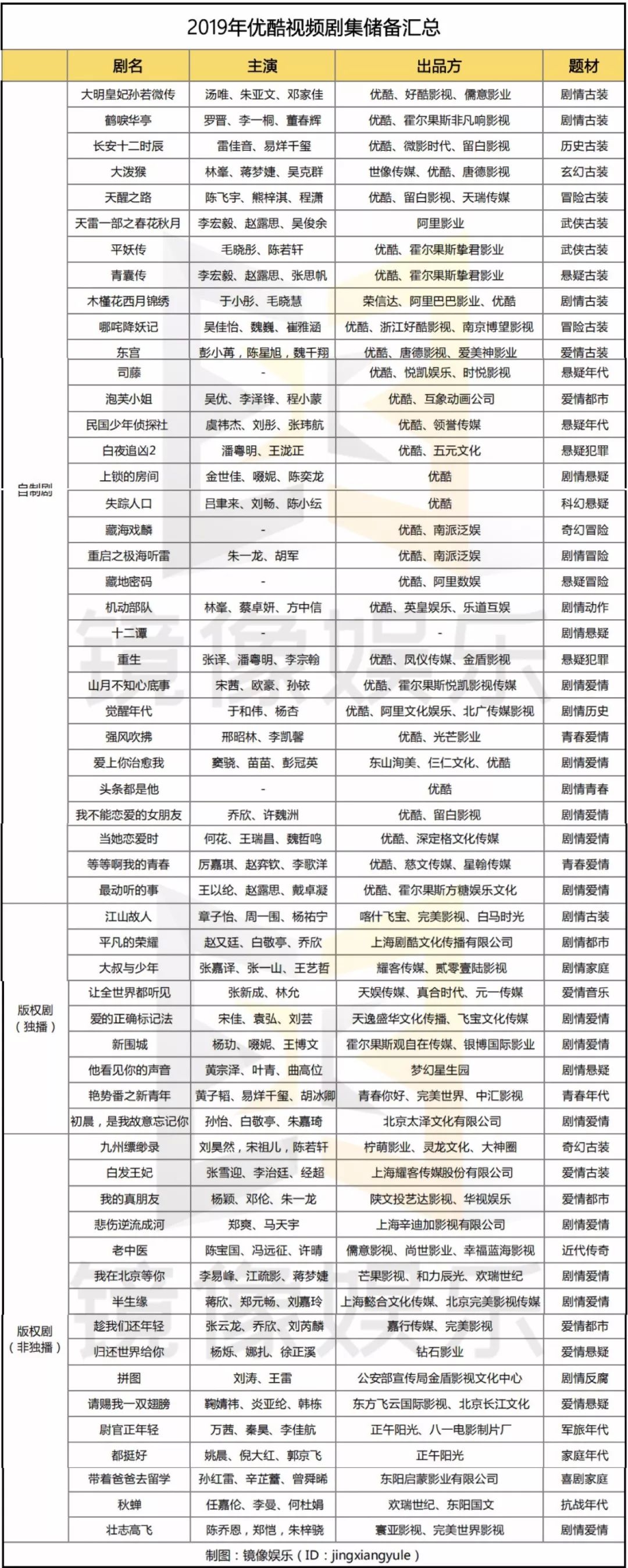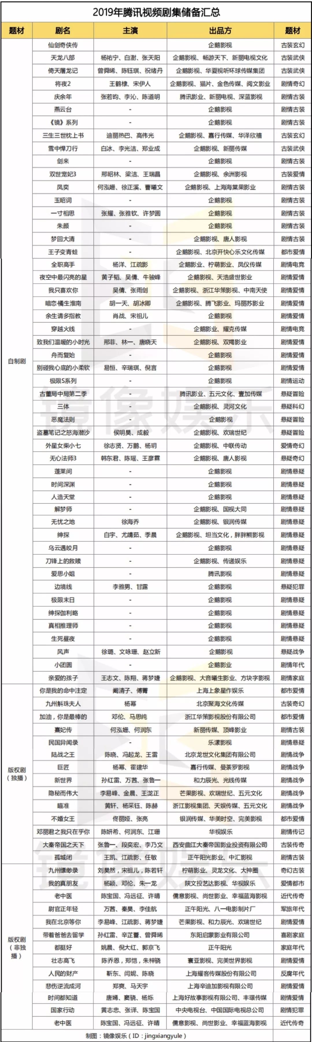 编者按:本文来自微信公众号“镜像娱乐”(ID:jingxiangyule),作者梁嘉烈,原标题为《“优爱腾”2019剧集战:古装版权剧锐减,自制剧比重达65%,悬疑、青春得宠,与传统影视公司合作加深》,36氪经授权发布。