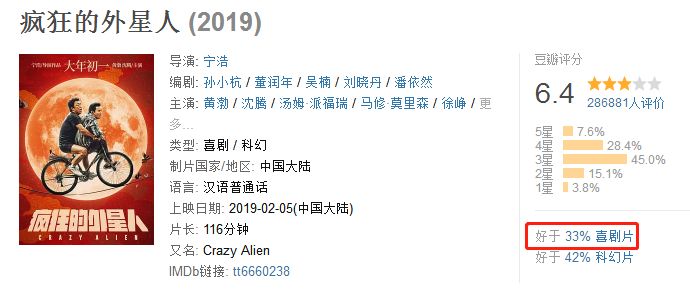 因此,包括《疯狂的外星人》在内的同档期喜剧,在票房上遭到碾压也是十分正常。