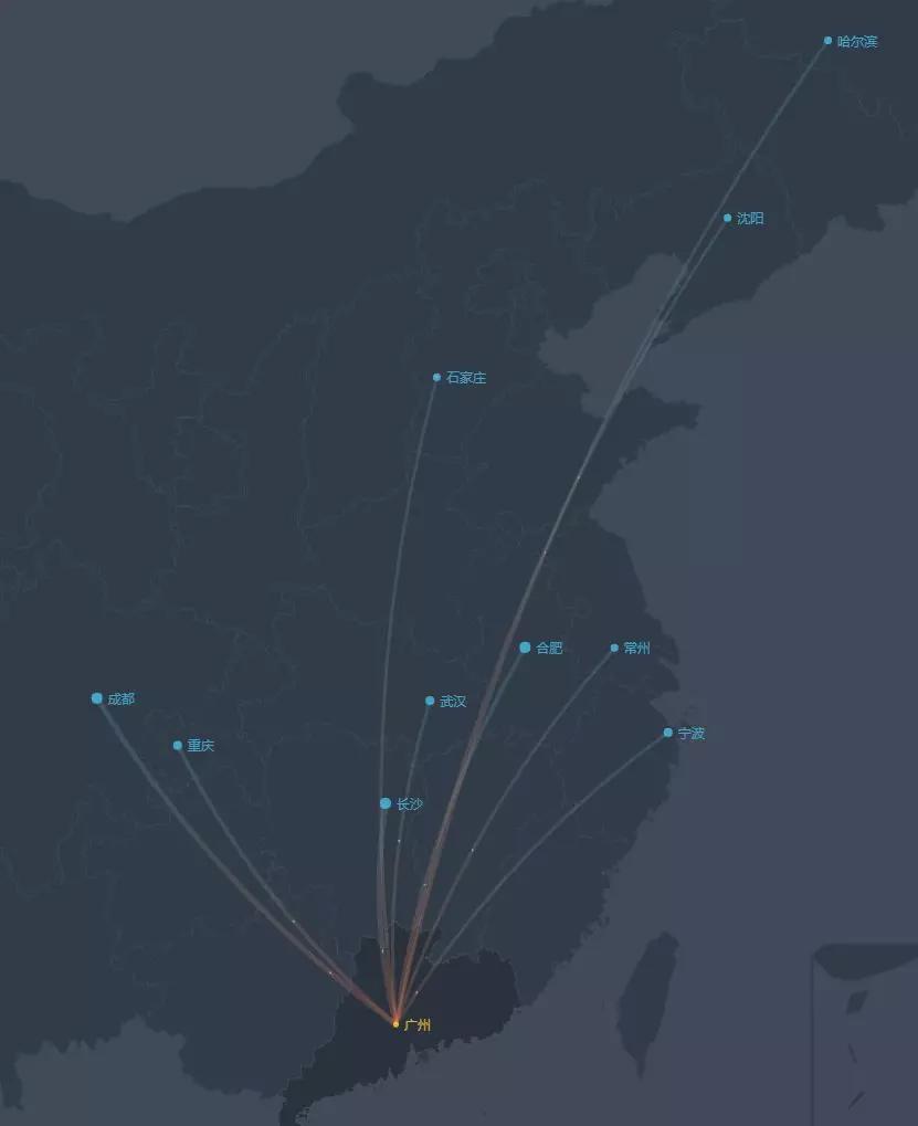 先来感受一下2019年春节返乡大军迁徙路线图的震撼吧!
