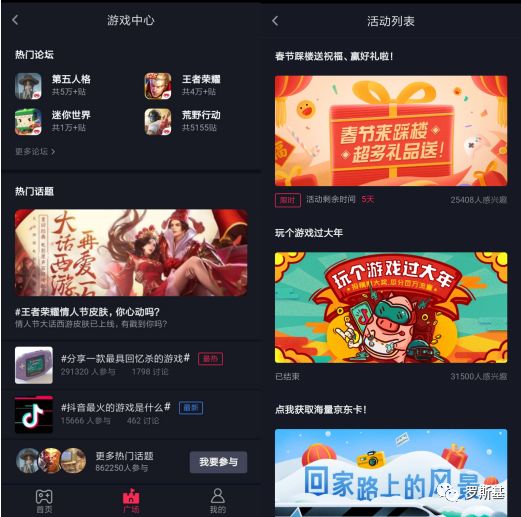 其中游戏广场把游戏论坛和活动相互融合起来促进活跃,而官方自己发的#号活动,提升了达人和普通用户的参与积极性。对他们来说,参与官方话题,有助于提供视频的曝光播放。