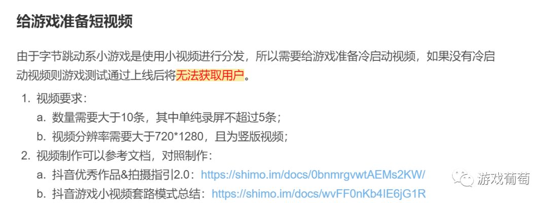 作为一个短视频平台,抖音小游戏平台对于小游戏的特殊要求自然就是“给游戏准备短视频”,因为这涉及到后续游戏的传播、推广等一系列用户获取行为。
