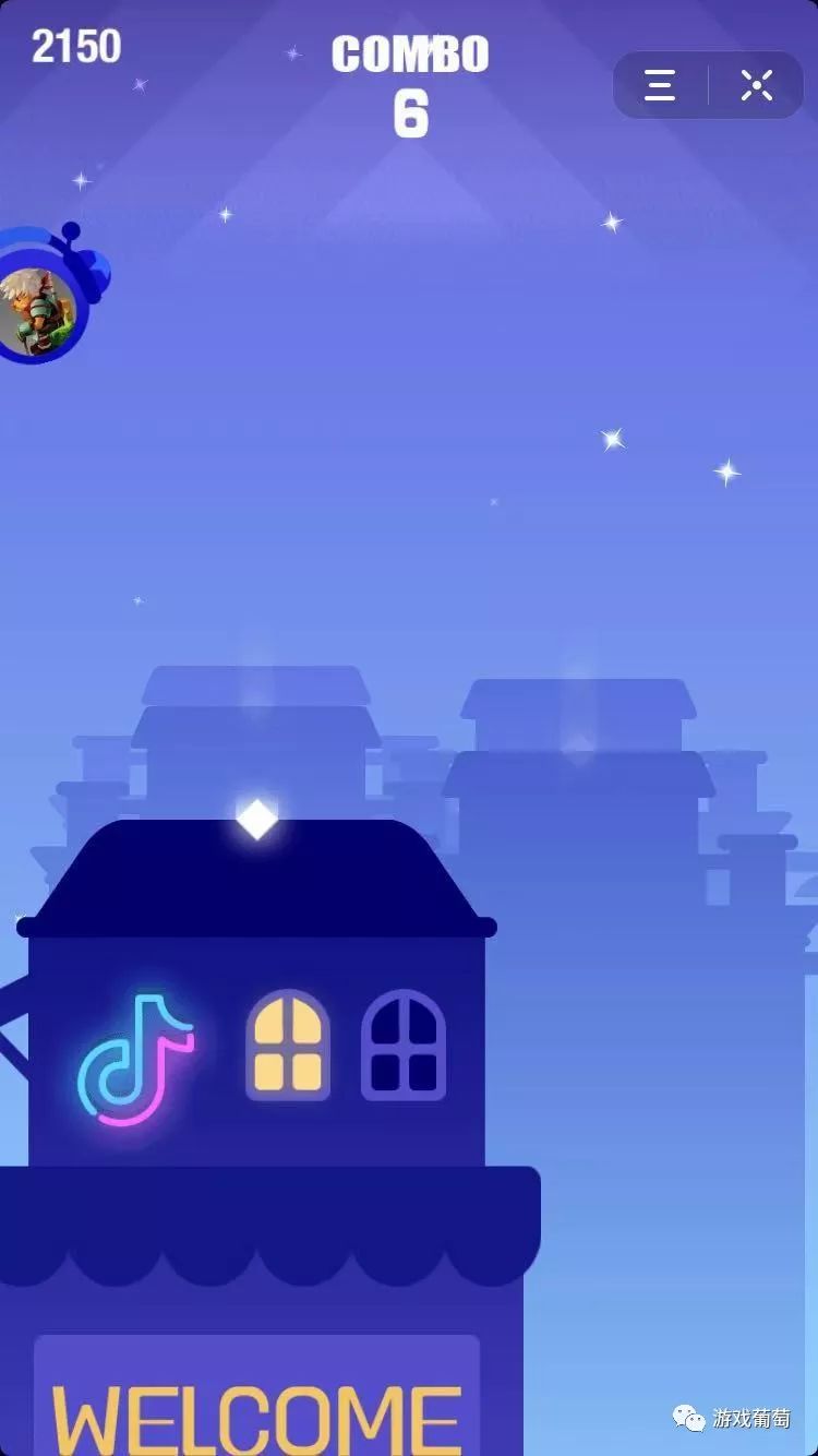 除了这些,关于《音跃球球》内容可说的不多,不过葡萄君认为有一个点值得单独提及,游戏中有大量的场景留白——也就是画面占比很高的建筑物墙体没有太多装饰,偶尔会出现一两个抖音的logo。如果未来《音跃球球》也要像微信《跳一跳》那样做品牌植入的商业化,那么游戏本身已经提前留足了位置。