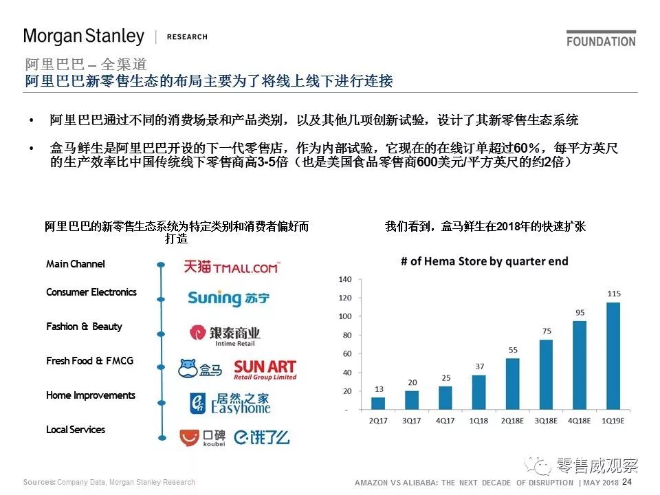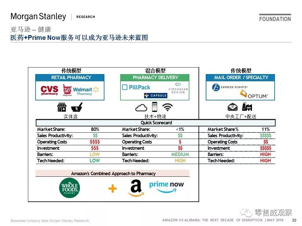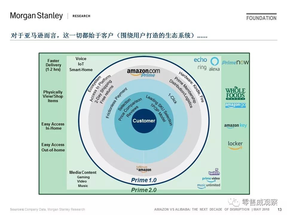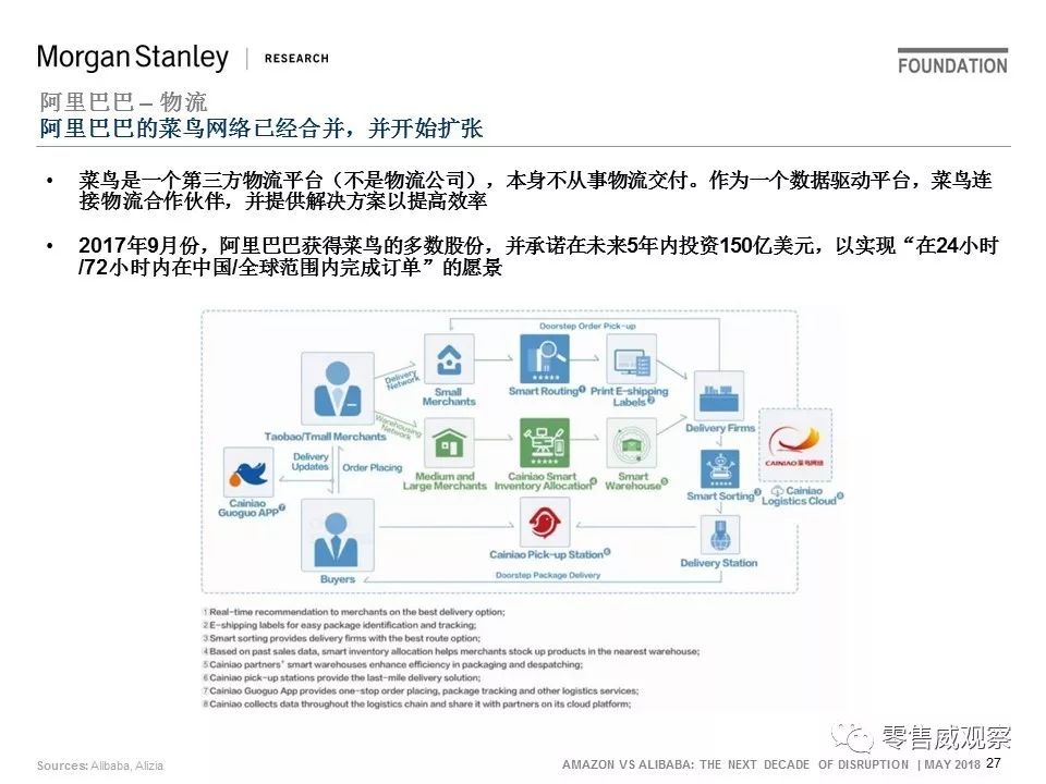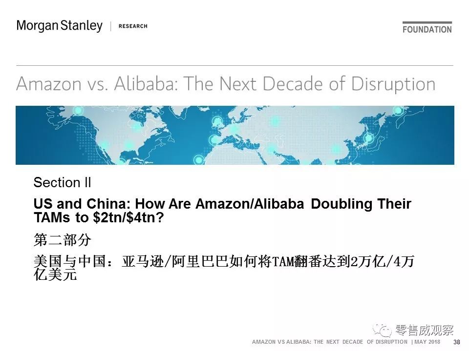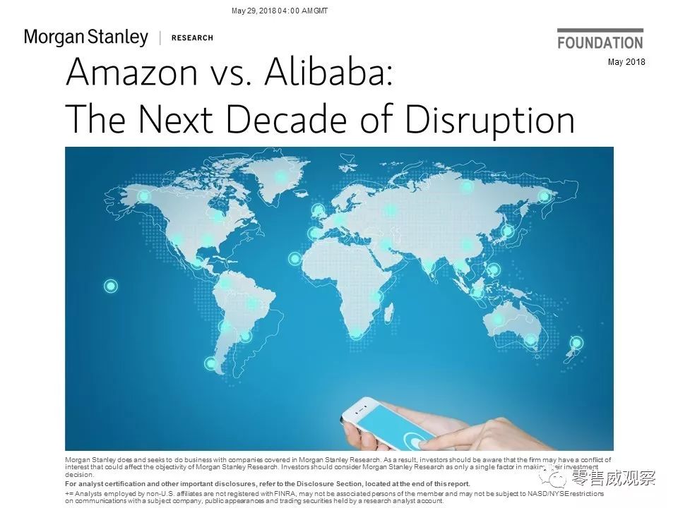 2018年5月,JP Morgan对此进行了分析,并以《亚马逊vs阿里巴巴:未来10年的颠覆》为题撰写一份报告。该报告分为4大部分,共129页: