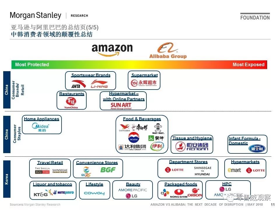 (4)哪些公司最容易/最不容易受到亚马逊/阿里巴巴潜在的破坏