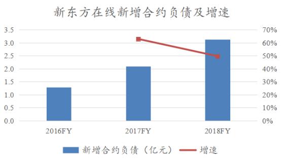 由于教育行业预收款的特点,新东方在线的“合约负债”项目(预收账)可以看出未来营收的趋势,随着学习进度,合约负债将逐步释放到营业收入中。通过计算期初期末的合约负债差额,再加上当期折算进收入的部分合约负债,就可以得到每期新增的合约负债: