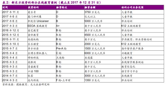新东方集团作为英语培训龙头,也拿出真金白银,参与十多个在线教育标的投资。