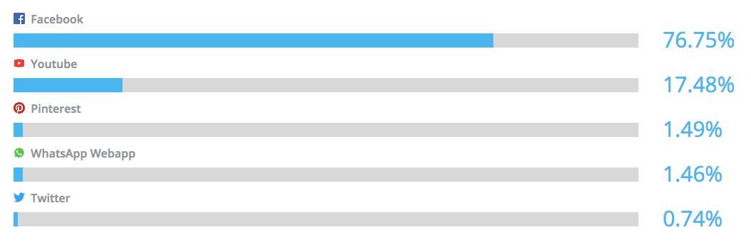 Wish从各大社交媒体的导流百分比