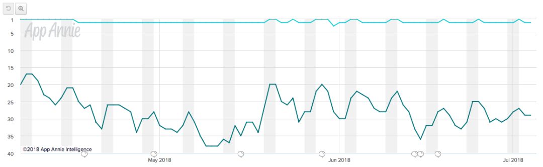 在苹果AppStore中的类别榜和总榜的排名