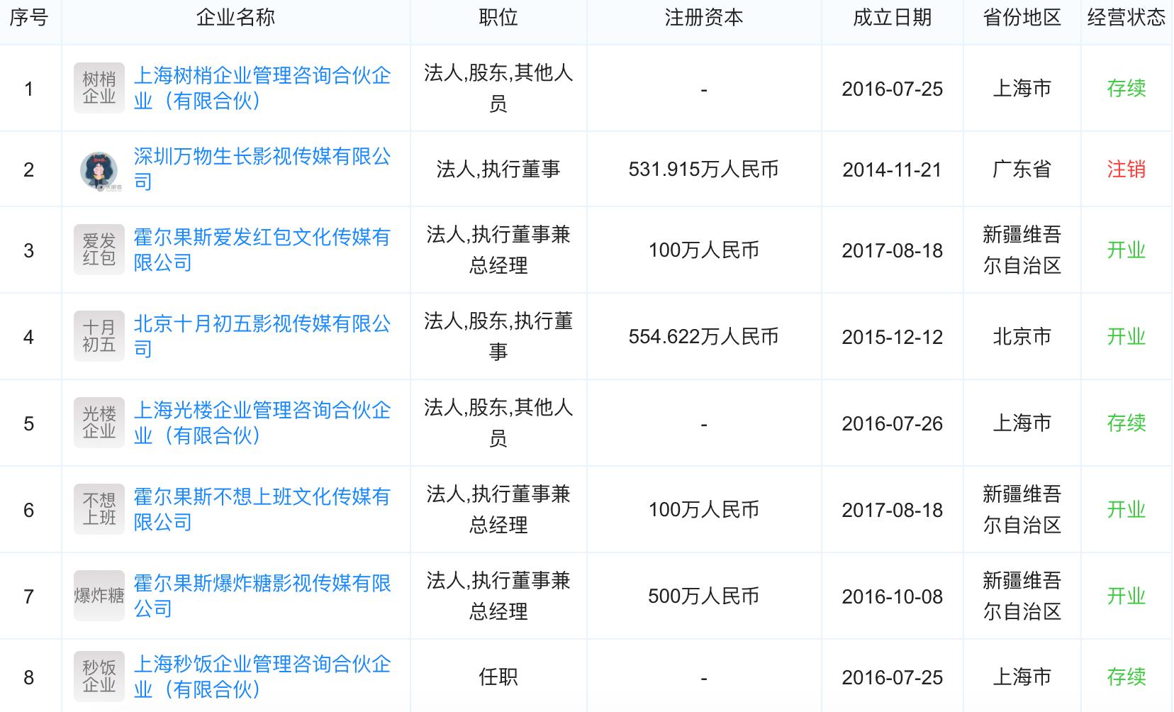 咪蒙公众号所属的公司为霍尔果斯爆炸糖影视传媒有限公司,帐号于去年5月3日迁移到该公司旗下。此前帐号所属主体为深圳万物长生影视传媒有限公司,企业主要业务为原创作家影视制作平台,于2014年11月成立,根据天眼查显示,目前该公司也已经注销。