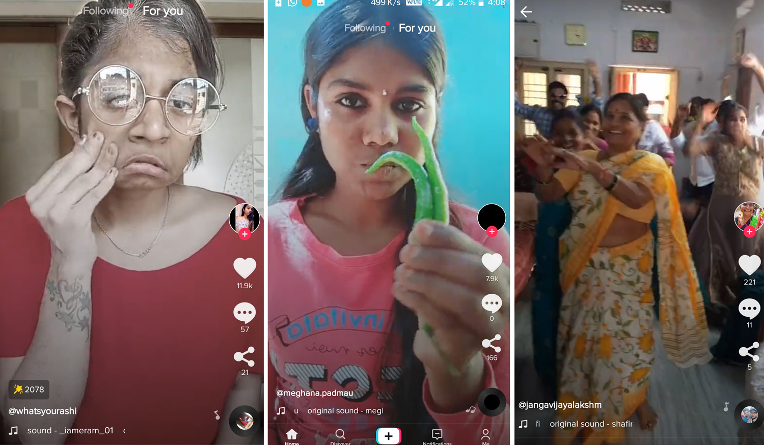 大多数印度一线消费者在首次接触到 TikTok 时都感到颇为惊讶。YouTube 和 Facebook 上有不少年轻人给年长一辈观看 TikTok 上那些哭鼻子小孩、奇人异士和模仿帝等内容的视频集锦,记录下了他们在观看时的震惊表情。TikTok 上那些广受欢迎的创作者并不是最漂亮、最体面、甚至最有才华的人,不像 Instagram 上的网红那么优雅漂亮,让人想入非非但又遥不可及。但是,这些创作者的真诚,以及对自我的彻底释放,让他们创作的内容变得具有粘性。