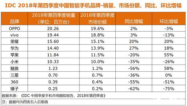 前面说到的锤子、360与魅族都是互联网手机玩法,在IDC2018年手机报告中,除了魅族出货量达到1千2百万,其他都是在百万级别,正在逐步被边缘化,与第一阵营的出货级别在拉开差距,在智能手机行业,强者愈强是趋势,这或许也同样正在宣告玩互联网模式的轻工业、性价比时代过去了。
