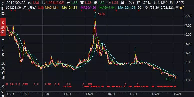这一解释很快遭到市场和监管质疑,因为在2017年庞大集团尚有超过2亿元的净利润。因此在发布预亏公告仅数小时后,庞大集团接到上交所的问询,要求其做出详细解释。受此消息影响,连续两个交易日,庞大集团股价下挫幅度一度近20%,每股1.13元的价格,凿穿历史最低点。