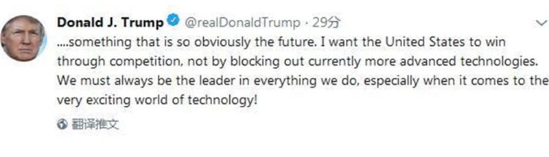 就在前两天,特朗普又专门为5G发推特,强调美国要尽快发展5G,并且强调要靠竞争而不是封杀来发展技术。