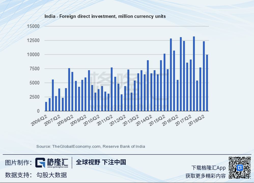 从1991年起,随着经济自由化改革不断推进,政府向国内国外私人资本开放的领域越来越多,私人企业也越来越积极地参与国内与国际市场的竞争。但即便如此,印度经济增长率长期低于专家预估的潜在趋势值,且波动很大,扛外部冲击能力弱,2008年次贷危机时经济增速以近乎自有落体的方式下行。