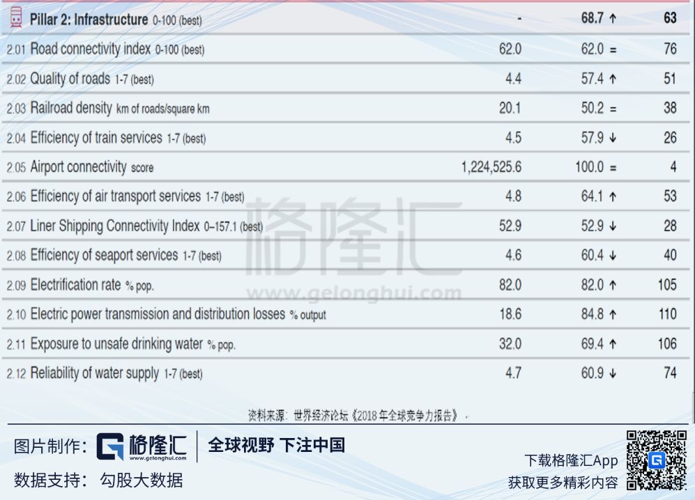 如道路连接指数全球排名76为,质量指数全球排名51位。