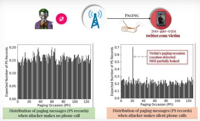 侯赛因等人的论文详细介绍了这些漏洞:首先是Torpedo,它利用了运营商用于在呼叫或短信通过之前通知电话的寻呼协议中的一个弱点。研究人员发现,在短时间内发出和取消几个电话可以触发寻呼消息,而不会向目标设备发出来电警报,攻击者可以使用该来电来跟踪受害者的位置。研究人员说,知道受害者的寻呼时机还可以让攻击者劫持寻呼通道,并通过欺骗消息(如Amber警报)或完全阻止消息来插入或拒绝寻呼消息。