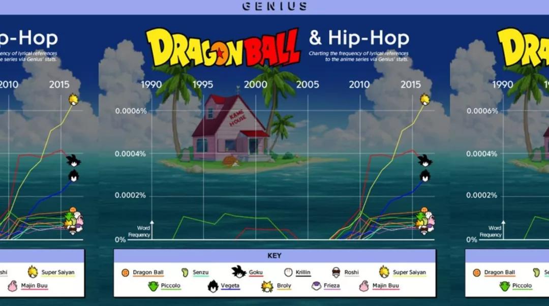 美国专业歌词网站Genius曾做过一个统计,从1990年开始,至少有50多首嘻哈音乐的歌词与《龙珠》内容有关,远远超过其它动漫。