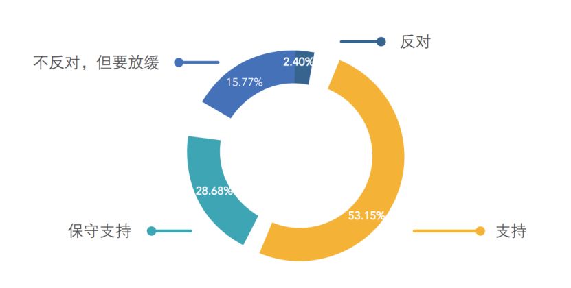 根据清华大学的《中国人工智能发展报告2018》中对3088人的调查显示:超过半数国民对人工智能的发展持支持态度,表示反对态度的仅占2.4%。