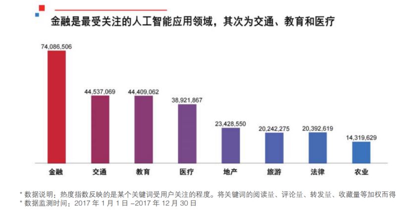 国民对人工智能应用领域的关注前四如下:金融、交通、教育、医疗。