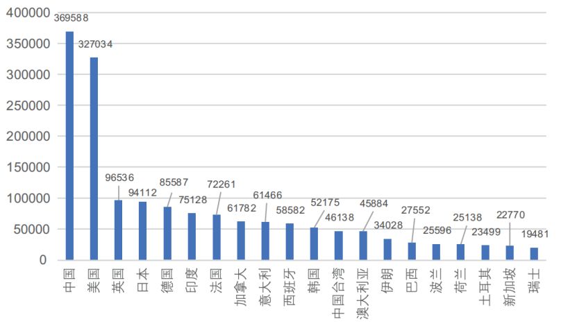 中国已经成为全球人工智能专利授权最多的国家,数量略微领先于美国和日本,而中美日三国占全球总体专利公开数量的74%。