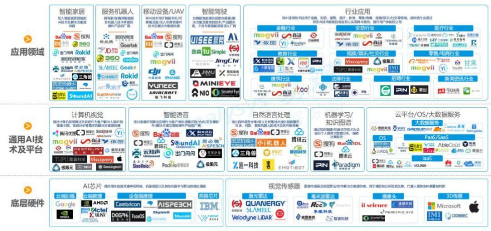 目前,互联网公司和软件公司巨头都在产业链的技术层和应用层着手布局。