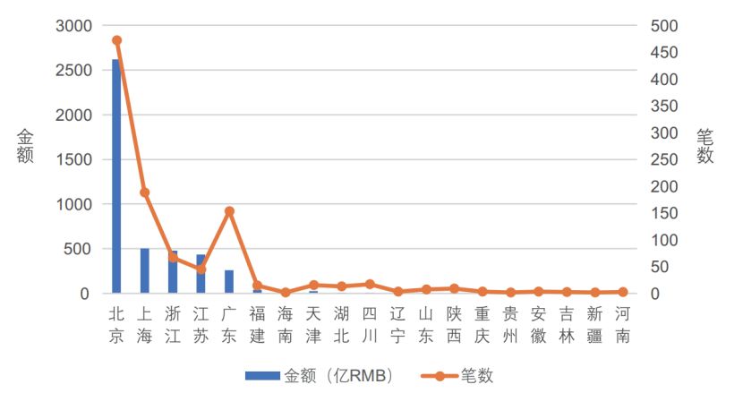 图4.中国人工智能投融资地域分布