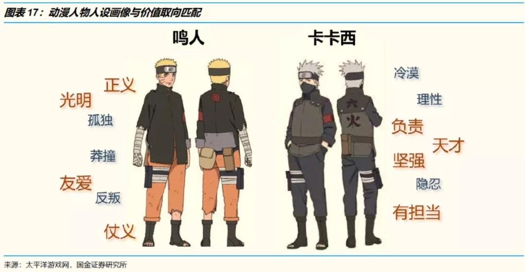 例如,漩涡鸣人,火之国木叶隐村的忍者,他成绩差、爱恶作剧,但内心向往光明与正义、珍视友情;旗木卡卡西,火之国木叶隐村的精英忍者,年仅12岁就成为上忍的天才,因为童年经历封闭自己的情感,看起来很冷漠,但是对于使命有担当,在危难时与乐于保护同伴。95后群体不可能拥有鸣人、卡卡西那样的精彩人生,但是可以从他们的人设中寻找自我。