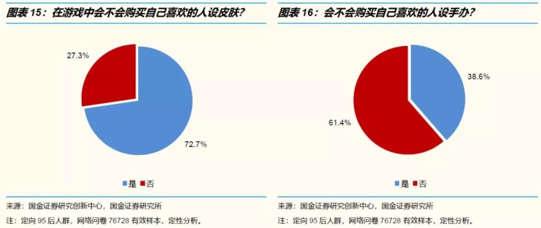 从消费层面来看,用户对于特定人设的喜爱还具有极强的衍生价值。被访者中有72.7%的人会在游戏中购买自己喜欢的人设皮肤,并且有38.6%的人会购买自己喜欢的人设手办。在这方面,游戏、动漫等虚拟人物具备先天优势:他们不会违反自己的人设。