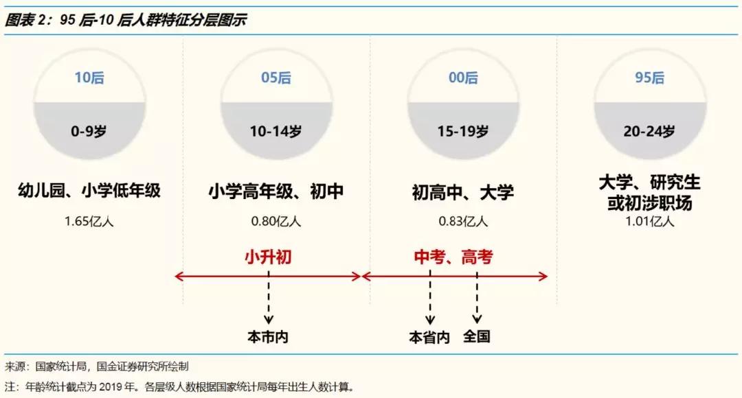 我们根据国家统计局对于各年出生人口的统计,计算得出95后和05后有2.64亿人,占全国总人口18.9%(2018年我国总人口是13.95亿人),95至00后有1.84亿人,占全国占总人口13.2%。现在,95、00后、05后多处于小学高年级、中学、大学及初涉职场的阶段,位于易于接受新鲜事物的成长期,是移动互联网的“原住民”,也被称为Z世代。