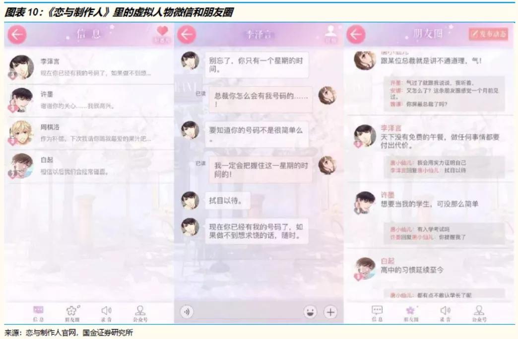 从游戏专业的角度看,《恋与制作人》是恋爱养成游戏,而不是RPG;但是,对角色的扮演和认同,是这个游戏不可或缺的元素。在游戏中,玩家可以给男主角打电话、发短信,甚至给他们的朋友圈点赞……这与“语C”的精神一脉相承。