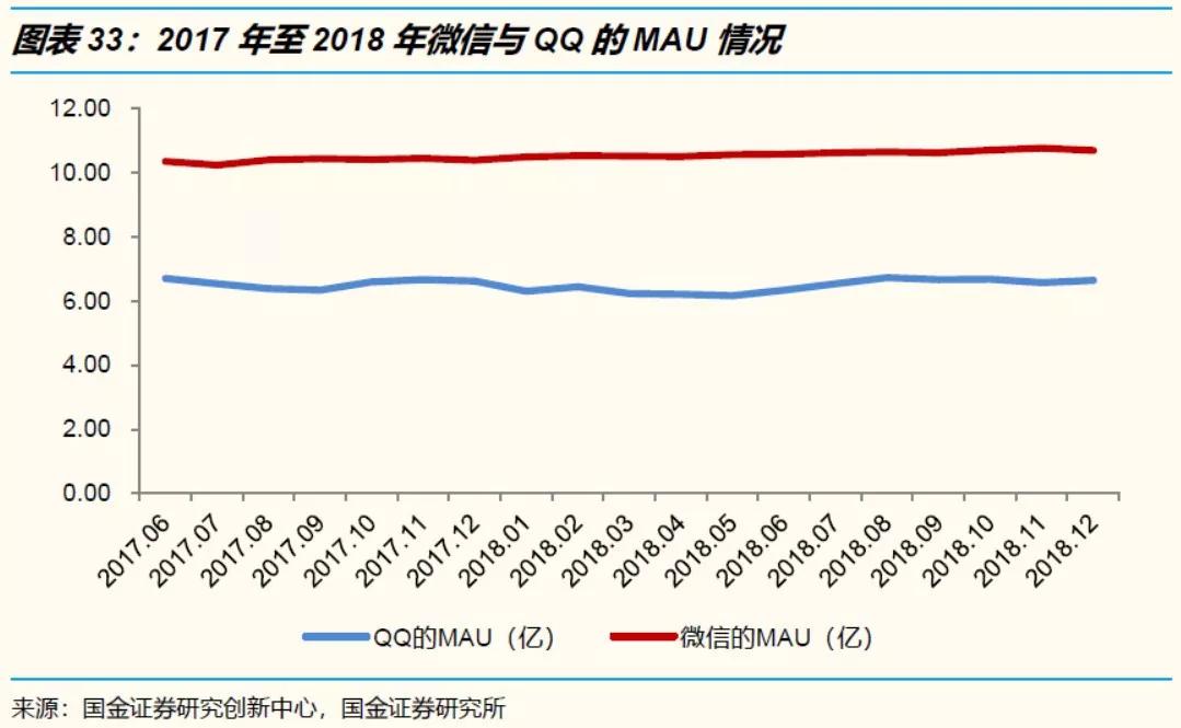 95后对于互联网社交工具的选择直接体现了群体的封闭意识。微信和QQ是目前国内两大即时通讯工具。根据国金研究创新中心的监测数据,2018年12月,微信与QQ分列全部移动App MAU的第一位和第二位,MAU分别为10.69亿和6.64亿。