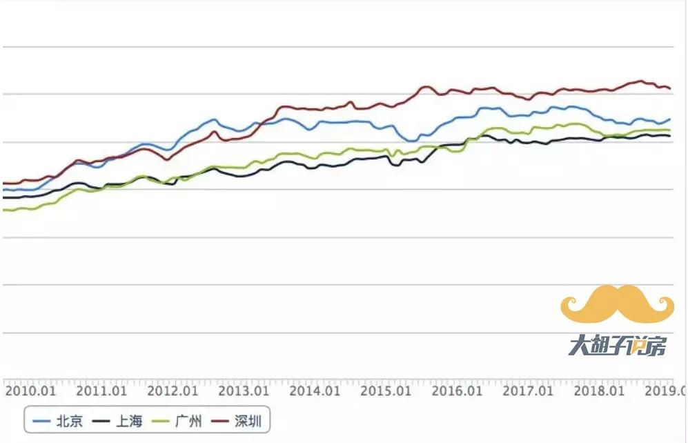 按照房天下的租赁价格指数,今年1月份,北上广深,只有北京的房租价格环比上涨;上海环比下跌了0.53%、广州下跌了0.33%、深圳下跌了1.09%。