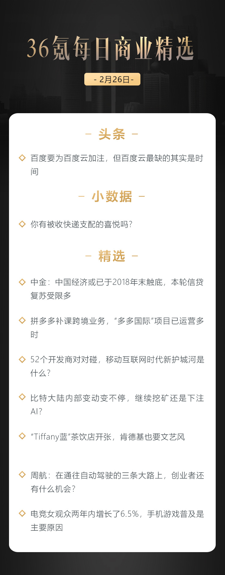 本文来自36氪付费栏目《36氪每日商业精选》——2月26日