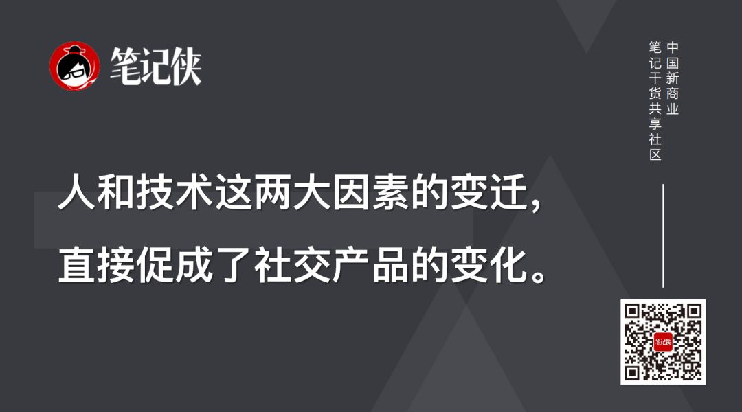 人和技术这两大因素的变迁,直接促成了社交产品的变化。