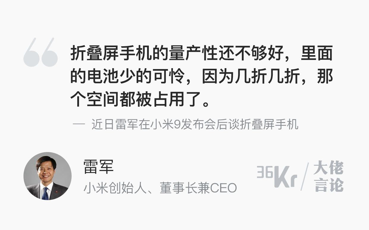 雷军:折叠屏手机的量产性不够好,电池少得可怜