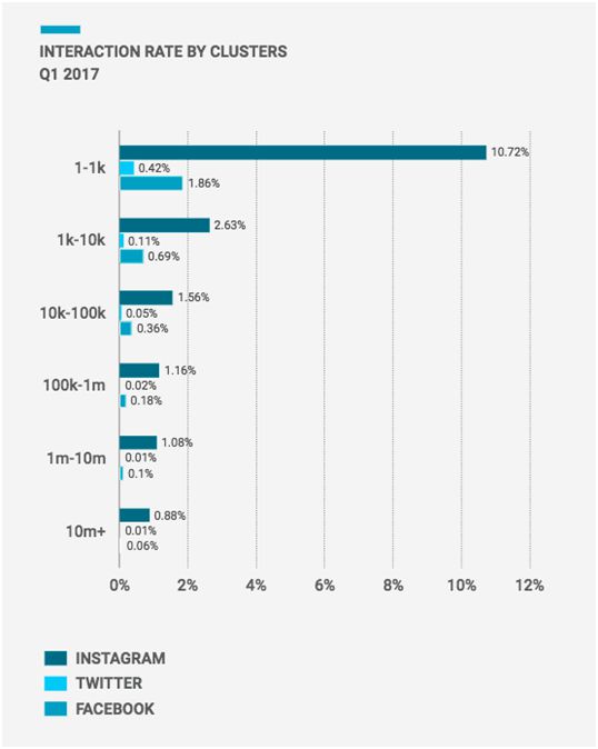 Instagram网红的粉丝黏度远远高于其他平台 | 来源:Quintly