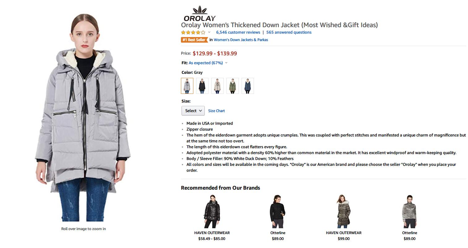 这款品牌为Orolay的女装加厚羽绒服早在2015年就已经在亚马逊网站上架了。当时它的售价还不足100美元。销量也并不起眼,(至少没有到CNBC也为其撰稿的程度)。