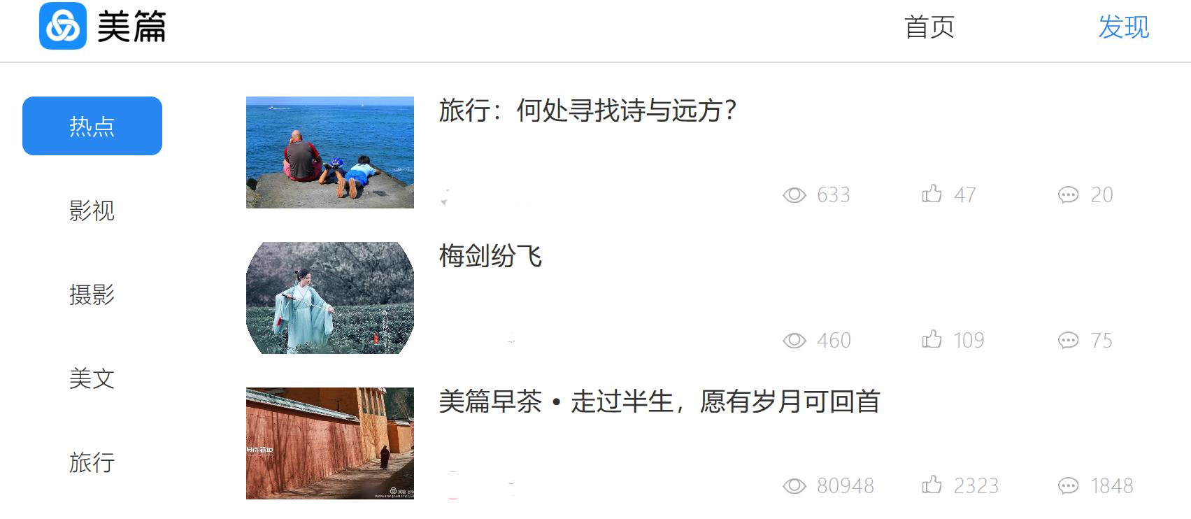 “我们当年有个小圈子,大家都喜欢写诗、摄影,在BBS论坛时代,我们如鱼得水,在线上办诗赛,在线下结诗社,大家来自五湖四海,互相只知道网名,乘兴而来,尽兴而去,和生活截然分开,岂不快哉?而在BBS论坛衰落之后,我们这种小众爱好群体,很难在微信和微博上建立强社交关系,美篇这样的产品,反而提供了类似的功能”一位退休老干部如是说。
