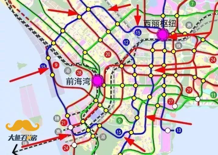 根据深圳地铁规划,前海规划的地铁有1号线、5号线、9号线、11号线、15号线,其中15号线是环线。