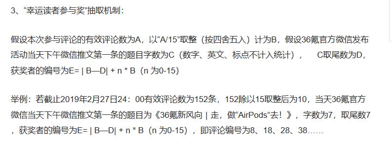 截止2019年1月31日24:00,有效评论共有66条,66/15取整为4,中奖编号为C=66-4n (n为1-15),即62、58、54、50、46、42、38、34、30、26、22、18、14、10、6。