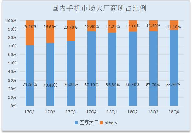 更致命的是,哪怕是这不断萎缩的市场也逐渐被前五家大厂商所占据,留给出现在others一栏中的小厂商们的生存空间不断被压缩。