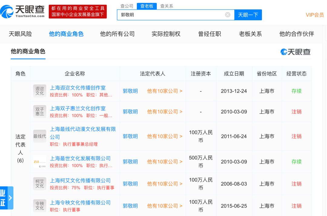 促发网娱君写下这篇文章的原因,是上周末偶然看到讯息,天眼查显示郭敬明旗下四家公司接连注销,其中包含柯艾文化、最线代动漫文化以及旗下作者笛安的上海令秧文化等。