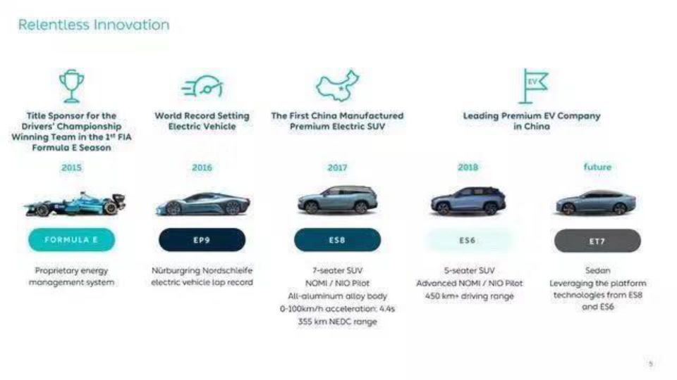 成立4年多时间的蔚来汽车,目前已研发了4款车型,包括电动方程式赛车、超跑EP9、第一辆量产车ES8,以及在2018年12月15日新发布的ES6。
