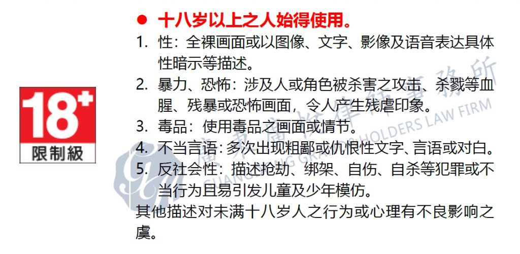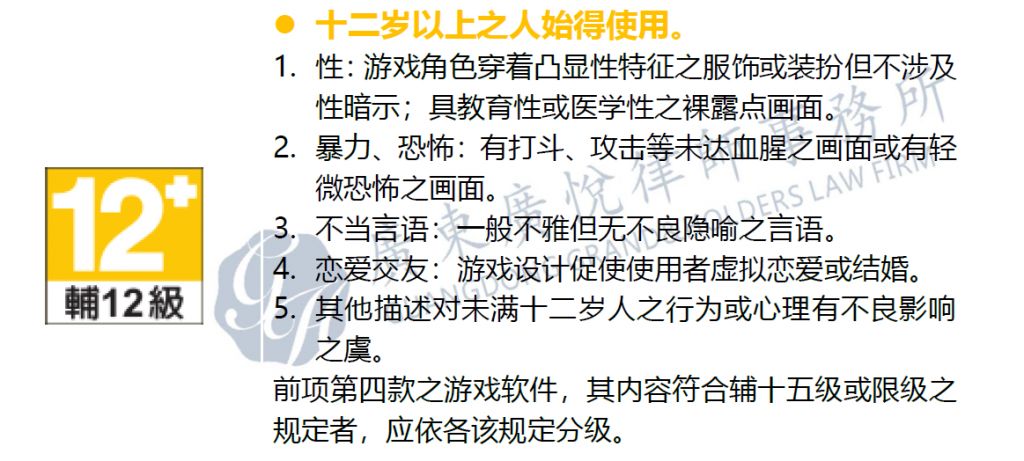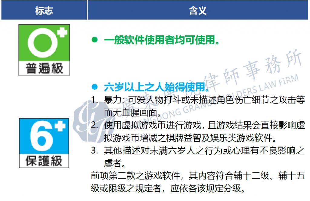 (三)台湾地区存在游戏软件分级管理制度,游戏软件在上线前需要按照规定标识分级信息;