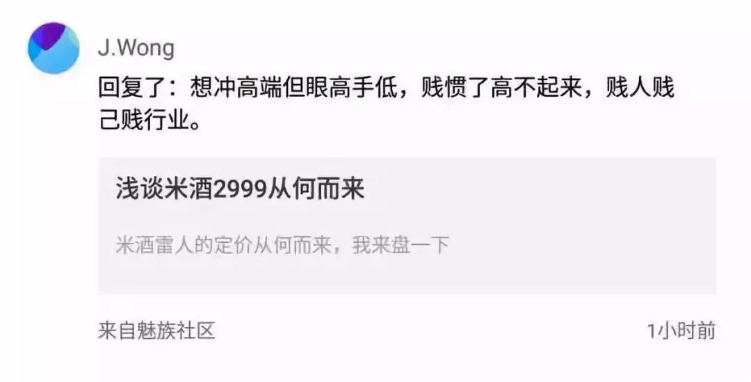 上个月20号,小米9发布之后,黄章在社区里回复网友说:“想冲高端但眼高手低,贱惯了高不起来,贱人贱己贱行业”。黄章与小米雷军的那段往事在业内流传甚广,这么多年过去黄章似乎也没能释怀。