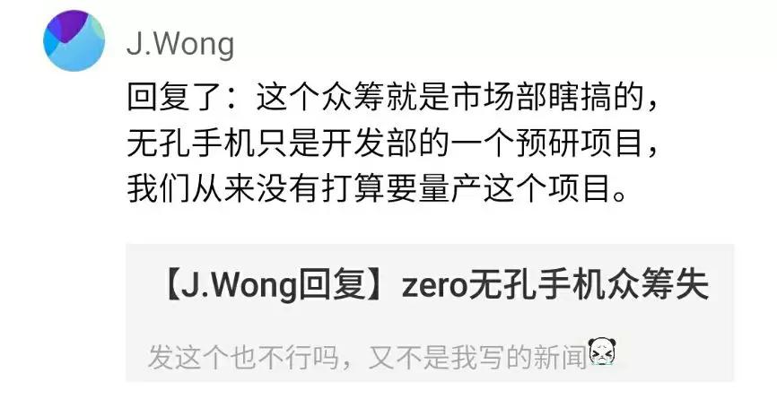 3月6日下午本是魅族note 9的发布会,作为老板黄章没有送祝福,而是在社区回复网友称,此前开启众筹的魅族Zero无孔手机就是市场部瞎搞的,这只是开发部的一个预研项目,魅族从来没有打算要量产。