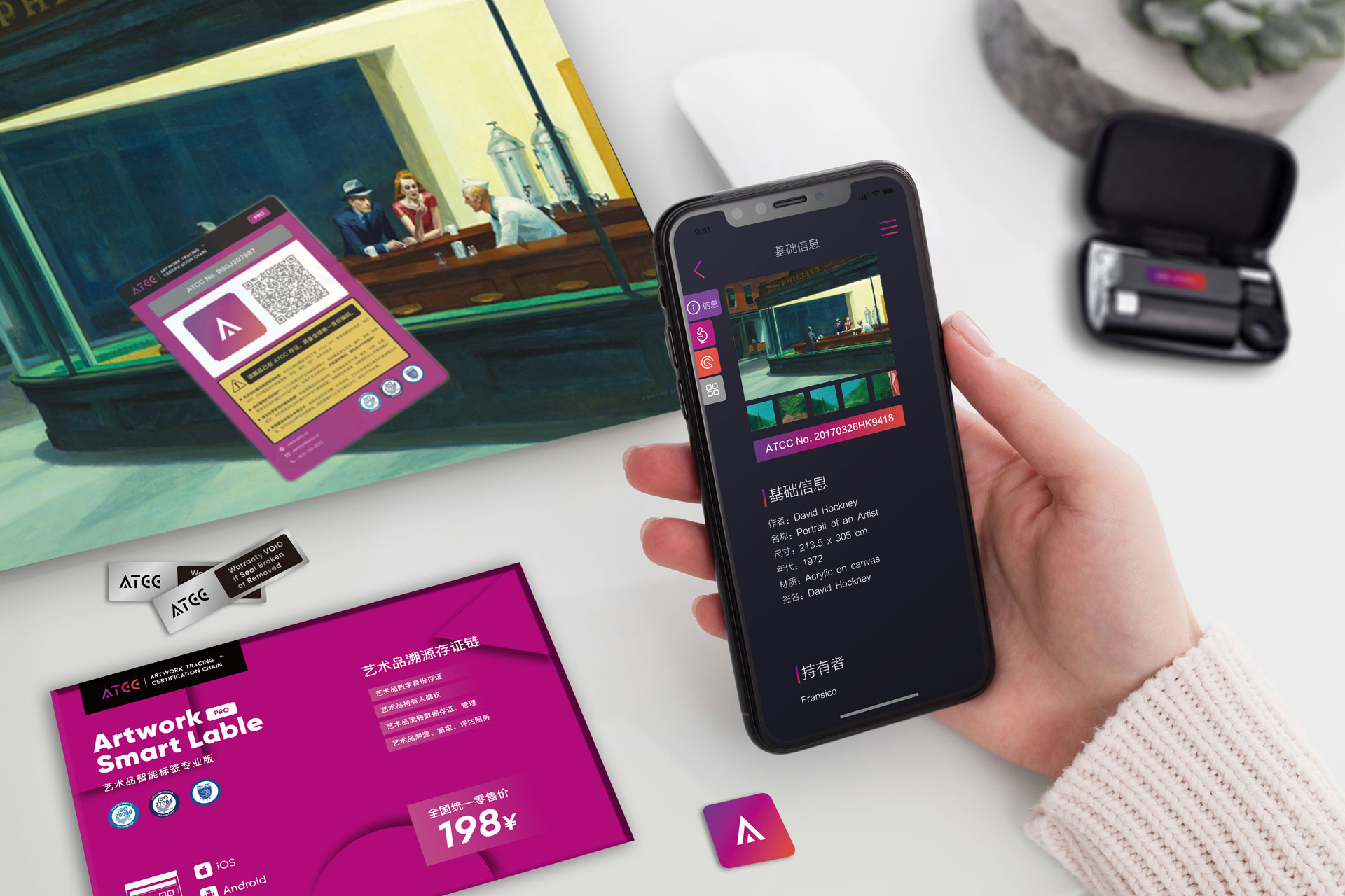 ATCC 成立于2018 年9 月,是一家第三方数据溯源存证机构,希望通过区块链技术把来⾃艺术家、画廊、拍卖⾏和收藏家的记录可以在⼀个系统上汇集在⼀起 。 通过内置NFC 芯片、二维码和ATCC 码组成的藏品标签与作品关联,用户可提供相关收藏或展出证据,录入藏品信息,芯片内的数据将记录在以太坊上,利用区块链技术不可篡改的特性,使其永久留存。更重要的是通过扫描标签上的二维码或感应内嵌的NFC 芯片标签,可用手机查看藏品信息数据,从而解决信息不对称问题。