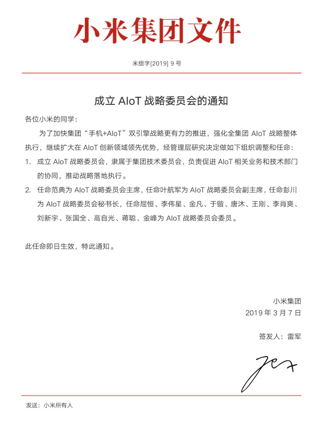 最前线 | 小米上市后第五次架构调整,成立AIoT战略委员会