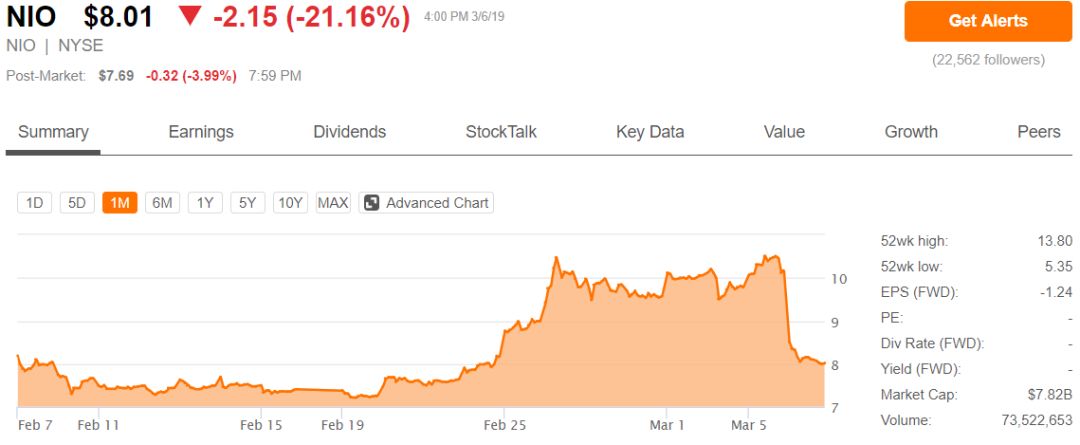 受惨淡的财报业绩影响,蔚来股价于3月6日暴跌21.16%,并于盘后继续下跌4%。